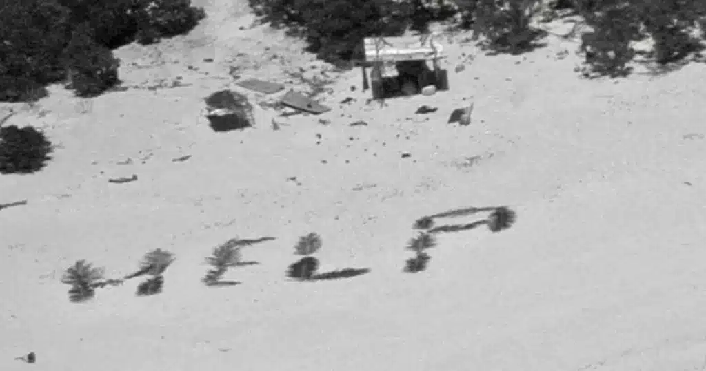 Dar, deși nucile de cocos ar putea fi delicioase, bărbații nu erau în mod clar resemnați să rămână pe Pikelot pentru totdeauna. Astfel, au folosit frunze de palmier pentru a scrie cuvântul „HELP” pe plajă. Indiferent dacă ideea le-a venit sau nu pentru că le rămăsese în minte acel cântec din Moana, aceasta s-a dovedit a fi cheia pentru localizarea trioului eșuat.