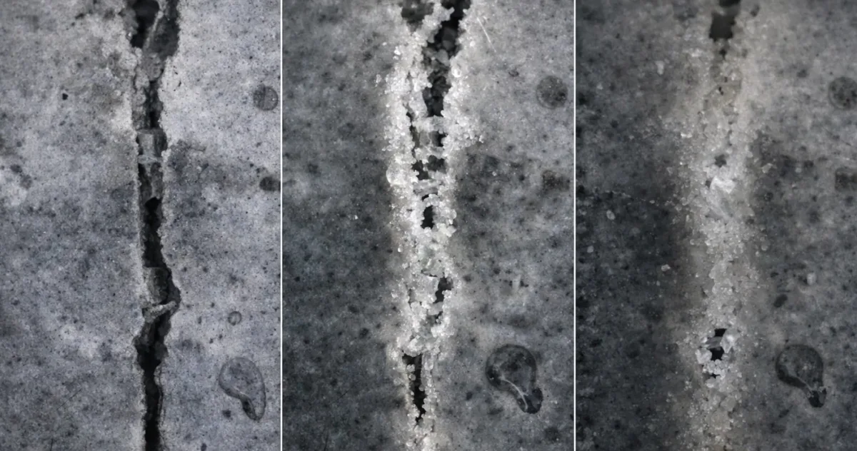 Cercetătorii au analizat blocuri de testare marcate de diverse tipuri de fisuri: verticale, diagonale, largi și fine. Au descoperit că daunele au început să se repare singure cel mai repede în zonele în care mineralele se puteau agăța de suprafețele interioare zimțate.