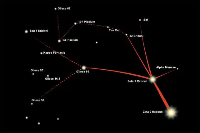 Mai mult, astronomii de la Universitatea de Stat din Ohio făcut o simulare computerizată privind poziția exactă a stelelor desenate de Betty în raport cu stelele Zeta Reticuli 1 şi Zeta Reticuli 2, aflate la 355 trilioane de kilometri sau 37 de ani lumină de la Pământ privind direct spre Soare. Computerul a redat cu exactitate harta desenată de Betty Hill.