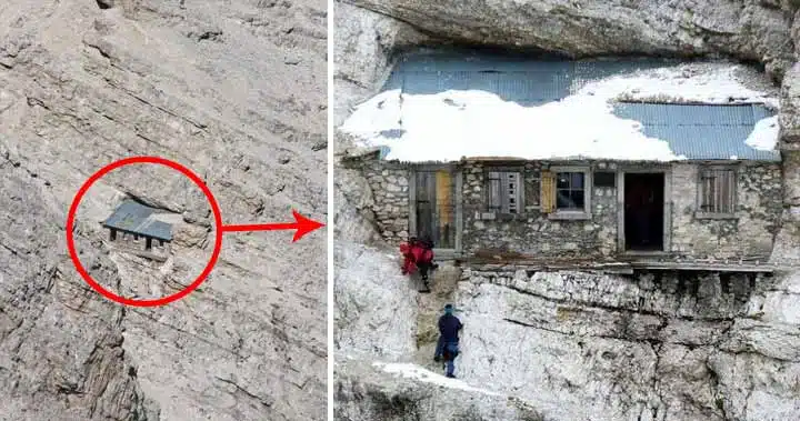 Casa are două uşi, patru ferestre şi un zid exterior, restul fiind închis de pereţii de stâncă. Construcția ar fi fost ridicată acum mai bine de un secol de soldații italieni, în timpul Primului Război Mondial. Soldaţii au folosit materiale de construcție și obiecte transportate cu scări de frânghie și cărucioare improvizate.