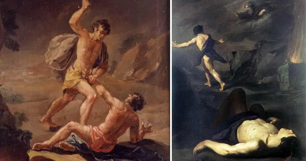 Potrivit cărții Genezei, Cain și Abel au fost primii doi fii ai lui Adam și ai Evei, primii oameni creați de Dumnezeu. Cain lucra pământul, iar Abel era păstor. Amândoi i-au adus lui Dumnezeu jertfe din roadele muncii lor, dar Dumnezeu a privit cu plăcere spre Abel și către jertfa lui, iar la Cain și la jertfa acestuia nu s-a uitat. Acest lucru l-a întristat și l-a mâniat pe Cain, care a devenit gelos pe fratele său.
