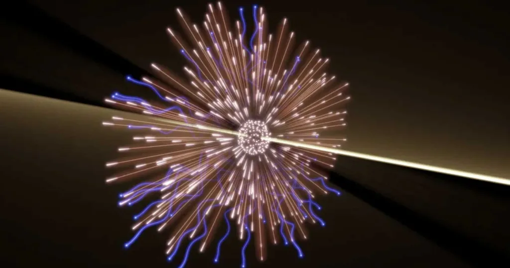 - Produceți o coliziune frontală: Când acești ioni super-rapizi se ciocnesc, energia lor colosală este eliberată într-un spațiu și un timp infime, creând o „minge de foc” din quarci și gluoni.
