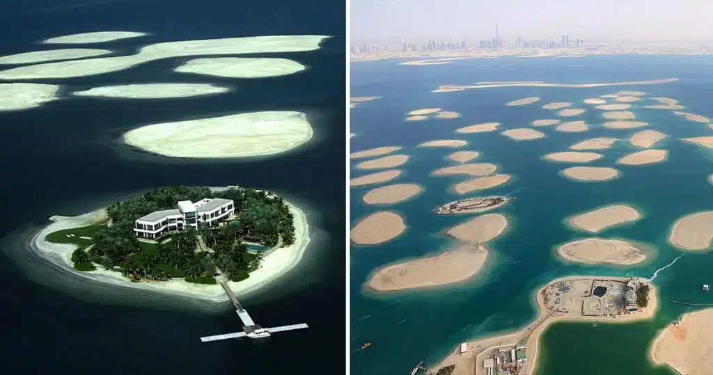 În largul coastei Dubaiului se află 300 de insule artificiale. Şi toate sunt complet goale. Dezvoltarea artificială, cunoscută sub numele de proiectul World Islands (Lumea), a fost creat în anul 2003, fiecare insulă având o suprafață cuprinsă între 25.000 și 90.000 de metri pătrați. Întreg grupul de insule, după cum îi spune şi numele, formează o mare hartă a lumii, fiecare insulă reprezentând o ţară.