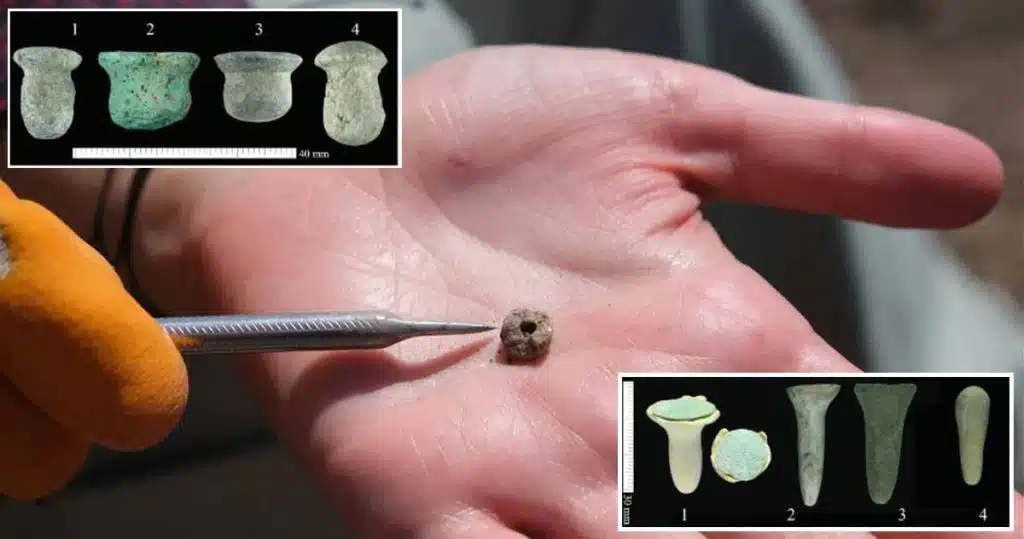 În total, autorii studiului au descoperit 106 obiecte care erau în mod clar destinate acestui scop, dintre care 85 erau suficient de complete pentru a fi analizate. Acestea erau realizate în cea mai mare parte din calcar, pietricele de râu sau obsidian și aveau un diametru minim de 7 milimetri, necesitând astfel o perforare mare în pielea purtătorilor.