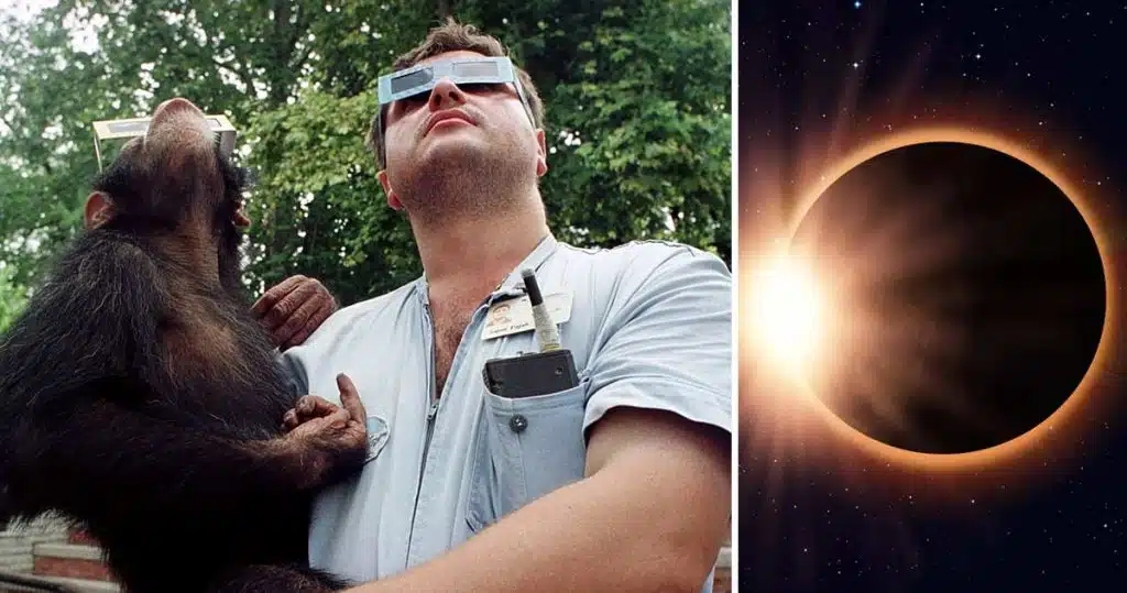 Oamenii de știință au înregistrat, de asemenea, animale din grădinile zoologice care au avut parte de niște giumbușlucuri ciudate; grădina zoologică Riverbanks din Carolina de Sud a efectuat observații comportamentale asupra a 17 specii diferite în timpul eclipsei totale de Soare din anul 2017. Punctul de totalitate a părut să păcălească unele animale să creadă că este ora de culcare. Gorilele și elefanții au început să se îndrepte spre incintele lor interioare de noapte.
