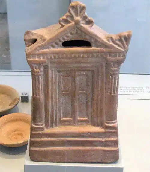 Totuşi, nu puşculiţele în formă de porcuşori sunt cele mai vechi în materie de economisire. Originea cutiilor pentru strângerea banilor datează din secolul al II-lea î.Hr. Primele cutii de bani au fost descoperite în colonia grecească Priene, în timpul săpăturii la o clădire rezidențială. Cutia pentru depozitarea banilor era realizată din lut, având o fantă în față pentru introducerea bănuților și bancnotelor.