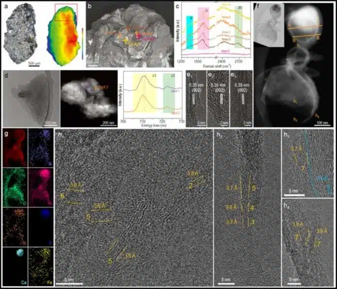 În urma unei analize suplimentare cu ajutorul unor tehnologii avansate de microscopie și de cartografiere, aceștia au confirmat că carbonul din eșantion era reprezentat de fulgi de grafen cu o grosime de două până la șapte straturi.