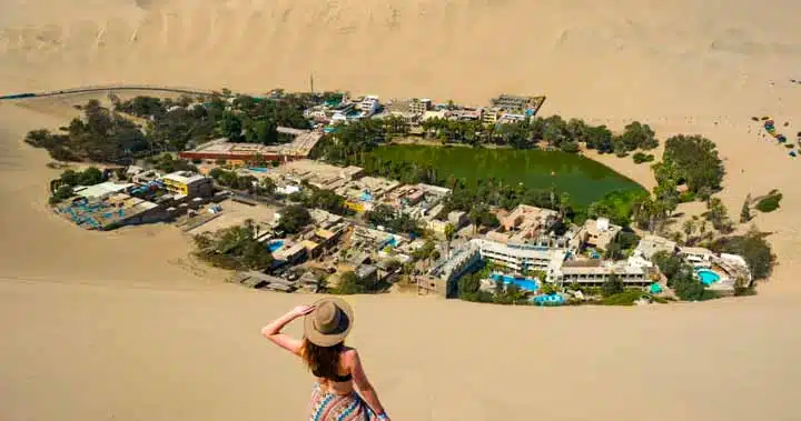Huacachina este un mic sat, situat în mijlocul deşertului Atacama din sudul Peruului, la o distanţă de circa 5 km de oraşul Ica. Ceea ce face acest sat atât de fascinant este laguna naturală, înconjurată de palmieri, care se află în mijlocul satului. Această oază, înconjurată de dune nesfârșite, pare desprinsă dintr-o carte de povești și atrage turiști din toată lumea, dornici să-i descopere secretele.