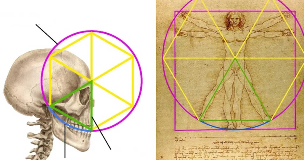 Și nu este singura dată când acest raport, sau configurația triunghiulară care îl generează, apare în corpul uman. Mac Sweeney citează un studiu care „a examinat 100 de cranii umane și a identificat un raport constant de 1,64 ± 0,04 în arhitectura craniană, măsurând arcul nazio-iniac (distanța curbată de la nasion la inion, de-a lungul suprafeței craniului) în raport cu arcul parieto-occipital (distanța curbată de la bregma la inion)”.