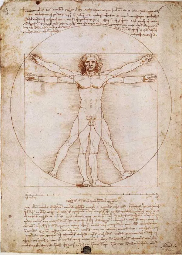 Cu siguranță îl cunoașteți pe Omul Vitruvian. Este, probabil, a doua cea mai emblematică imagine din istoria occidentală, după Mona Lisa: schița dintr-un carnet de însemnări, înfățișând un bărbat în două ipostaze suprapuse – una cu picioarele apropiate și alta cu brațele și picioarele desfăcute – ambele înscrise perfect într-un cerc și un pătrat.