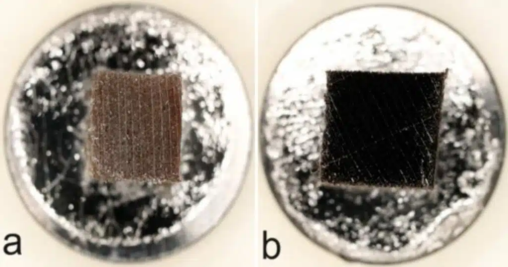 Mai mult decât atât, atunci când un aliaj de aur a fost aplicat pe material, acesta a rămas negru. Acest lucru arată că structura lemnului s-a schimbat – nu este vorba doar de un strat suplimentar, ci de o reconfigurare a elementelor fundamentale ale materialului.