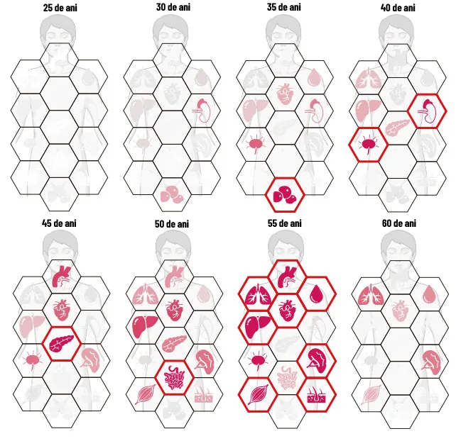 Potrivit cercetării, care a analizat proteinele din corpul uman la diferite vârste, după acest prag, traiectoria de degradare a țesuturilor și organelor devine mult mai abruptă. Iar printre primele afectate se numără vasele de sânge, care prezintă unul dintre cele mai rapide ritmuri de îmbătrânire.