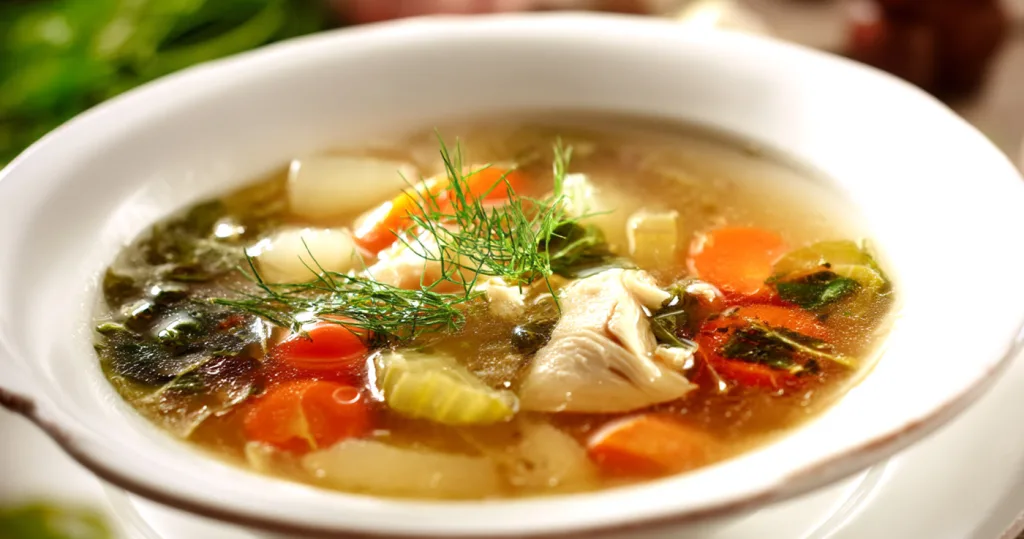 - Hidratare și nutrienți: Este o sursă excelentă de lichide și electroliți, esențiale când ești bolnav. În plus, este plină de vitamine și minerale din legume și carne;
