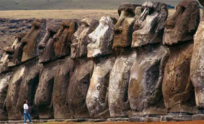Rapa Nui, cunoscută mai bine sub numele de Insula Paștelui, nume dat de europenii care au ajuns acolo prima dată, este situată în sud-estul Pacificului și este renumită pentru cele aproximativ 1.000 de sculpturi de moai, statui cu chip uman, de dimenisiuni uriaşe.