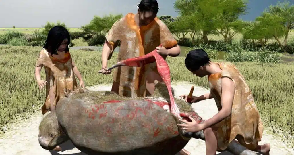 Pentru a determina dacă semnele de tăiere au fost făcute de om, cercetătorii au fotografiat și au creat scanări 3D ale oaselor de animale. Unele dintre semne aveau o secțiune transversală în formă de V, ceea ce, în opinia echipei, este foarte sugestiv pentru semnele de măcelărire cu unelte de piatră. În total, cercetătorii au numărat 32 de urme de tăiere pe oasele animalului. Folosind o serie de tehnici statistice pentru a clasifica și compara cantitativ semnele, cercetătorii au ajuns la concluzia că modelul nu putea fi aleatoriu: tăieturile au fost făcute de oameni cu ajutorul unor unelte.