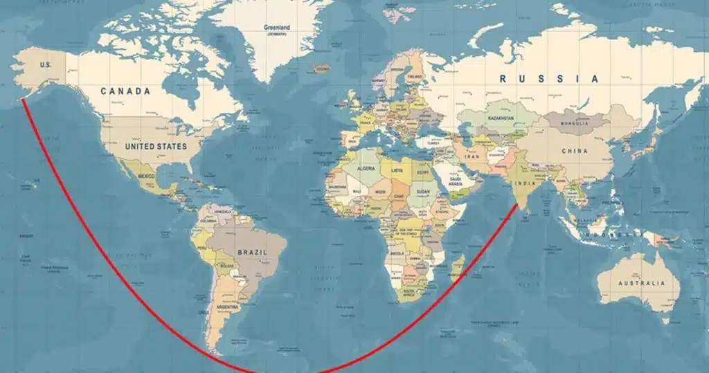 Deşi la prima vedere poate crea confuzie, se poate naviga din India până în Alaska în linie dreaptă.