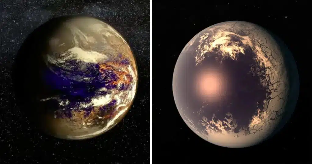 Aceasta ar putea avea, de asemenea, o calotă de gheață pe timp de noapte. Dar partea expusă căldurii stelei nu ar fi un deșert uscat, ci un ocean lichid, potențial locuibil, asemănător mărilor de pe Pământ.