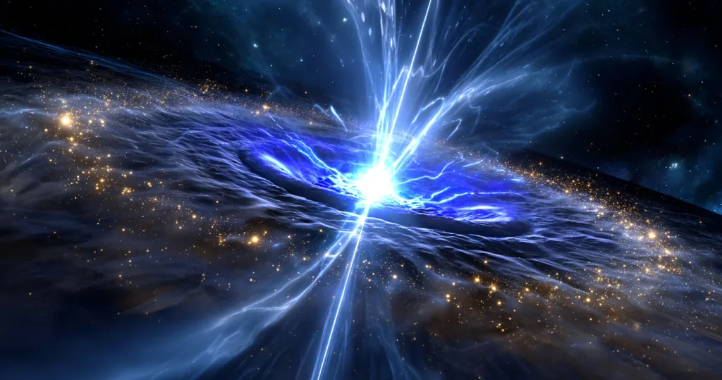 Pe măsură ce gazul și praful cosmic cad în spirală spre această gaură neagră, ele sunt accelerate și încălzite la temperaturi extreme, făcând quasarul să strălucească mai puternic decât un trilion de sori. Această energie colosală este cea care încălzește norul de apă din jur, creând o atmosferă fierbinte și densă, un mediu complet diferit de cel rece și gol din galaxia noastră, Calea Lactee.