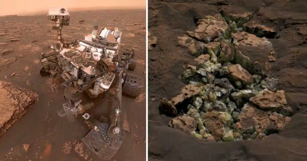 Roverul Curiosity a spart o stâncă de pe Marte și a împrăștiat o comoară galbenă surprinzătoare după ce a crăpat din greșeală exteriorul ei aparent obișnuit.