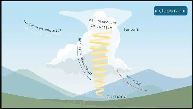 Un factor determinant pentru formarea tornadelor este forfecarea vântului, care se caracterizează prin creșterea vitezei vântului și schimbarea direcției acestuia odată cu altitudinea.