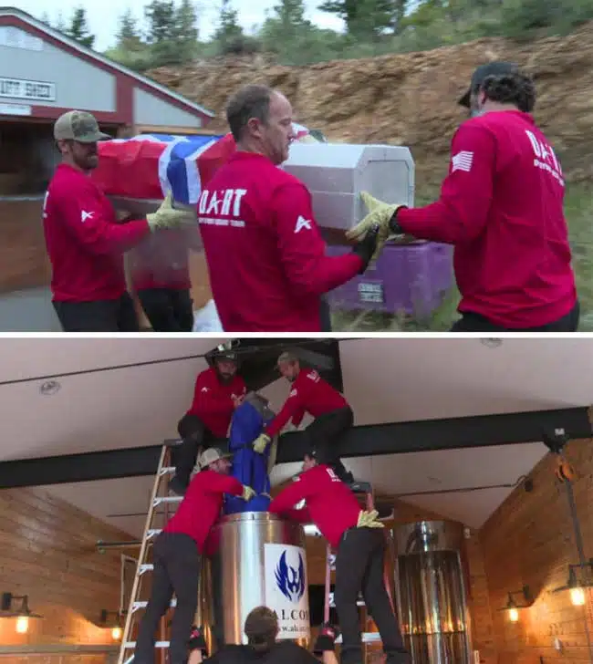 „Când acești băieți stau în picioare, arată ca oricare alți patru băieți. Dar când spui «Start» sunt atât de rapizi și mișcările lor sunt atât de sincronizate.”, a spus Arrowood. În timp ce anunțau orele și temperaturile, echipa l-a despachetat pe bunicul Bredo din cutia sa, l-a mutat într-o dubă, l-a împachetat din nou și l-a condus o oră prin munți până la hotel. Acolo, au folosit o macara specială pentru a-l coborî în camera criogenică, care se află într-o clădire presupus bântuită, denumită Muzeul Internațional de Criogenie.