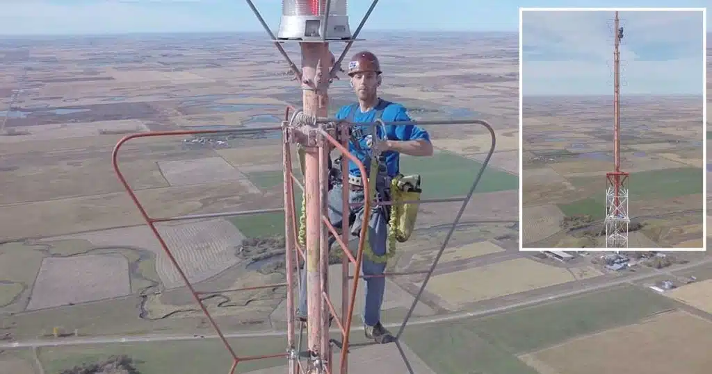 În ultimii ani, bărbatul a urcat sute de turnuri, în zeci de state, în fiecare anotimp, uneori pe vânturi de 90 de km/h. Face parte din munca sa la Sioux Falls Tower and Communications.