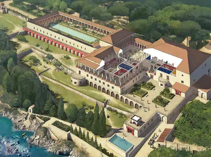 În apropiere, orașul Herculaneum avea Villa dei Papiri, una dintre cele mai grandioase reședințe din Roma antică. Se crede că a aparținut lui Lucius Calpurnius Piso Caesoninus, socrul lui Iulius Cezar, această proprietate întinsă se întindea pe o suprafață de peste 20.000 de metri pătrați. Cu vedere la mare, piscine grandioase și grădini extinse, a adăpostit și una dintre cele mai vaste colecții de sculpturi clasice descoperite vreodată.